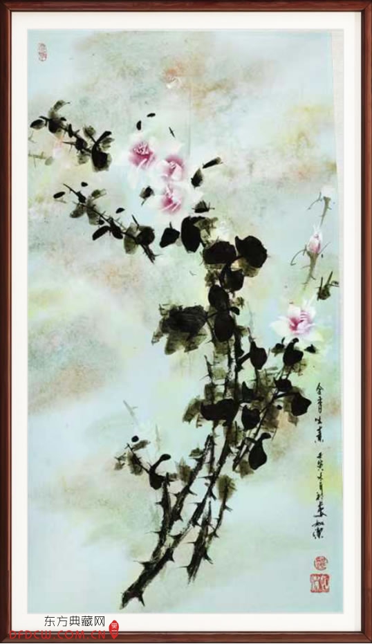2017年4月18日在北京举行第十二届中法文化之春新闻发布会、外交部向法国驻华大使顾山赠送中国著名“月季”画家如洁先生国画作品《和露凝香》。