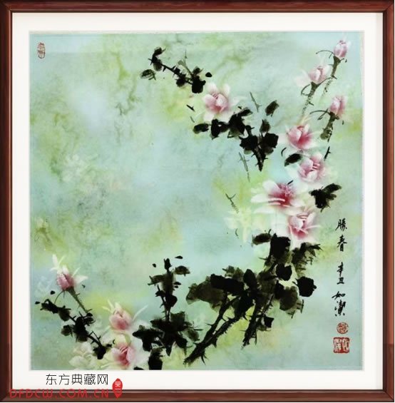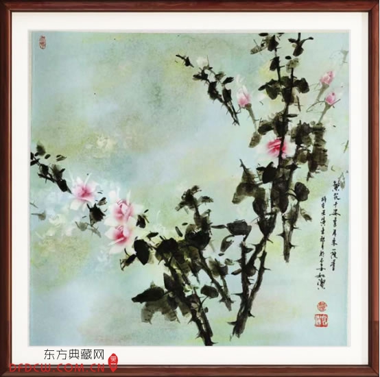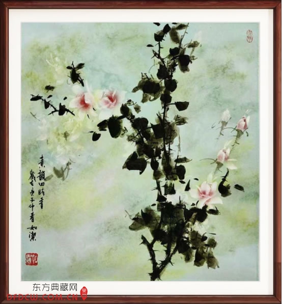 2017年9月21日在曲江国际会展中心举行第十七届欧亚经济论坛《一带一路》二〇一七年九月二十一日在西安曲江国际会展中心举行。会议期间特邀嘉宾文化艺术大师如洁先生依序向抗日名将《张自忠》将军之女美藉华人领袖张素久女士赠送月季花《别有姿色春意浓》作品。