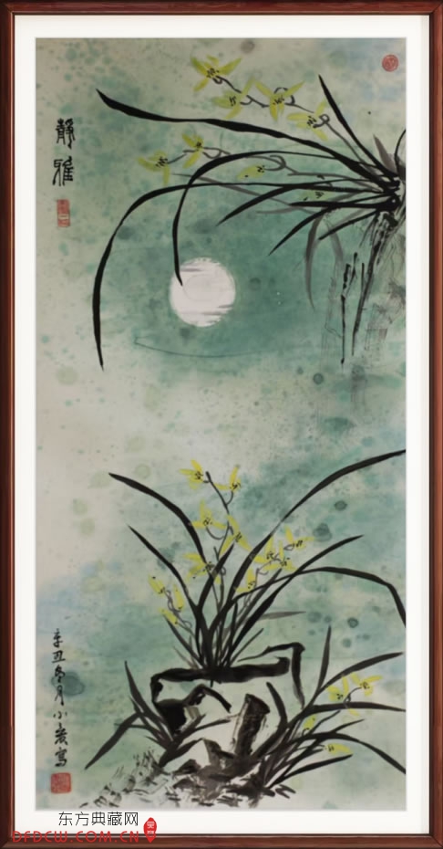 刘小爱的艺术风格以墨兰为核心,继承国画大师董寿平的“董兰”技法并创新青绿融墨,作品清雅刚劲,融合传统文人画精神与现代审美,擅长用兰花表达君子风范与生命哲思。以下是具体分析: