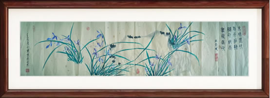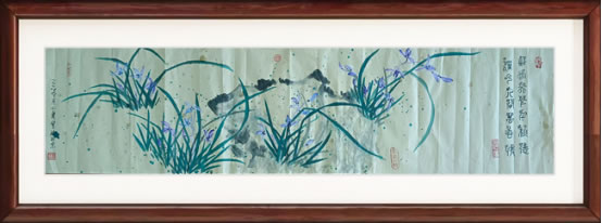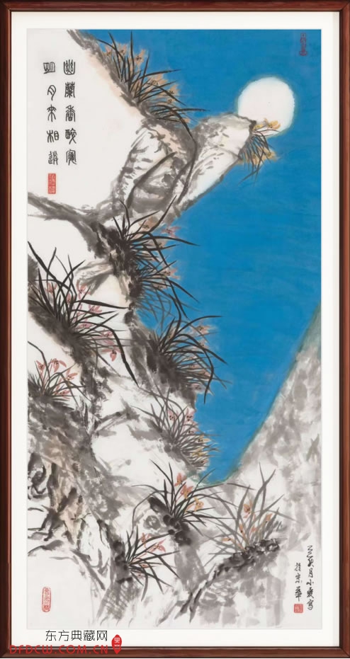 青绿融墨:在传统墨兰中融入青绿色彩,形成“色不掩墨,墨不覆色”的独特效果,增强视觉层次。